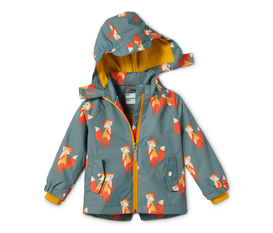 - Yazılabilir isim etiketli çocuk yağmur montu