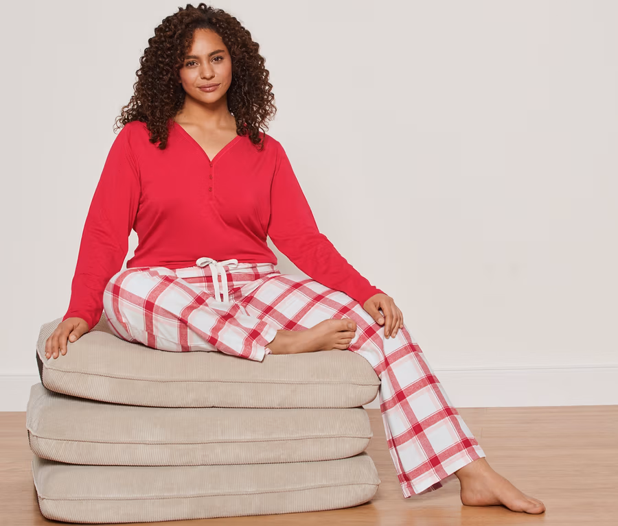 - Pijama altı kırmızı-krem rengi kareli
