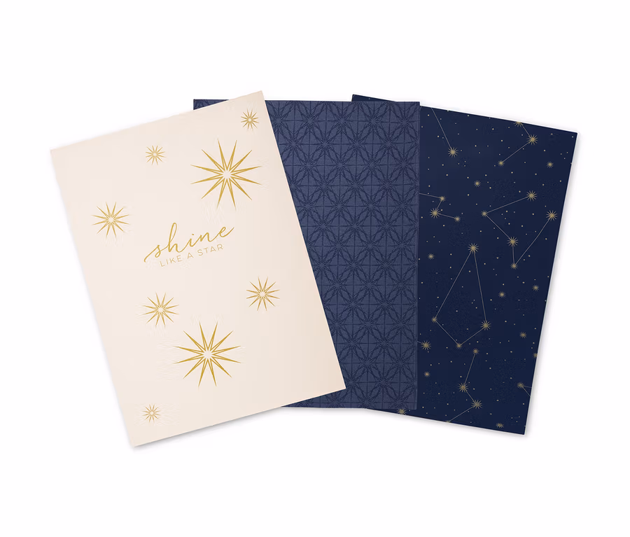 1x mavi, 1x mavi ve altın rengi baskılı, 1x krem rengi ve altın rengi baskılı