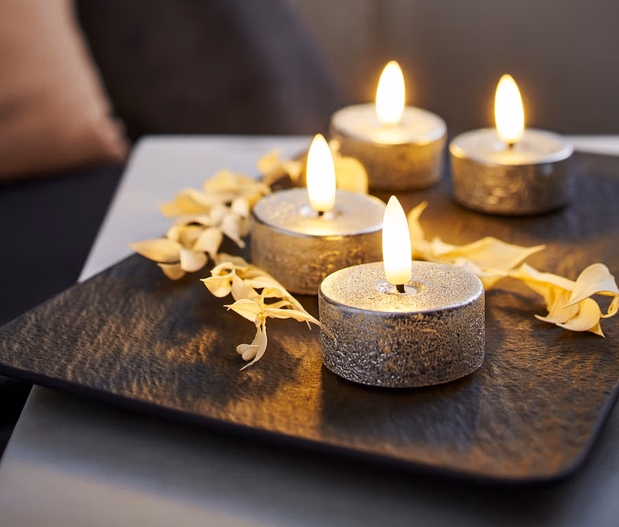 • LED alev ve entegre ışıldama efekti ile mum ışığını taklit eder