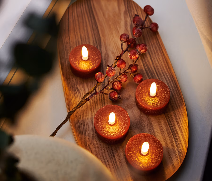 - LED alev ve entegre ışıldama efekti ile mum ışığını taklit eder