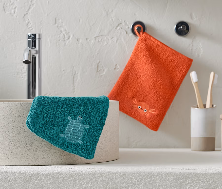 1 adet turuncu ve yengeç işlemeli, 1 adet deniz mavisi ve kaplumbağa işlemeli