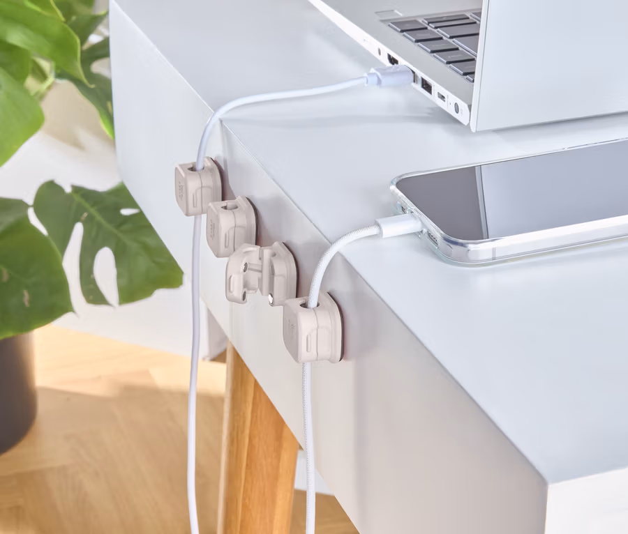 - Örneğin bir masaya sabitlemek için arkasında yapışkan ped bulunan kablo düzenleyici