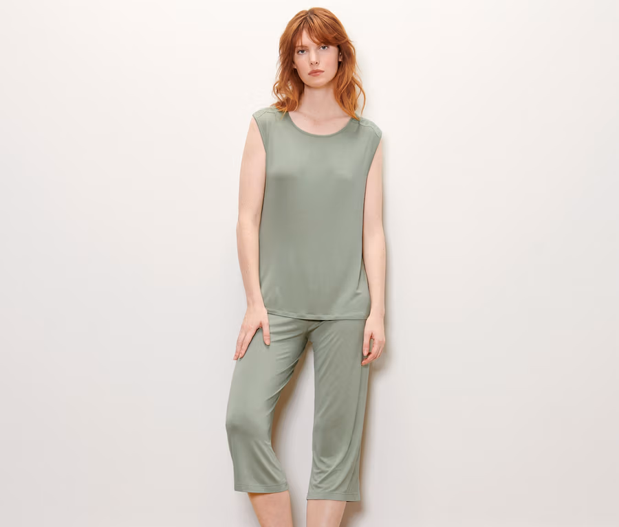 - Yuvarlak yakalı kolsuz pijama üstü