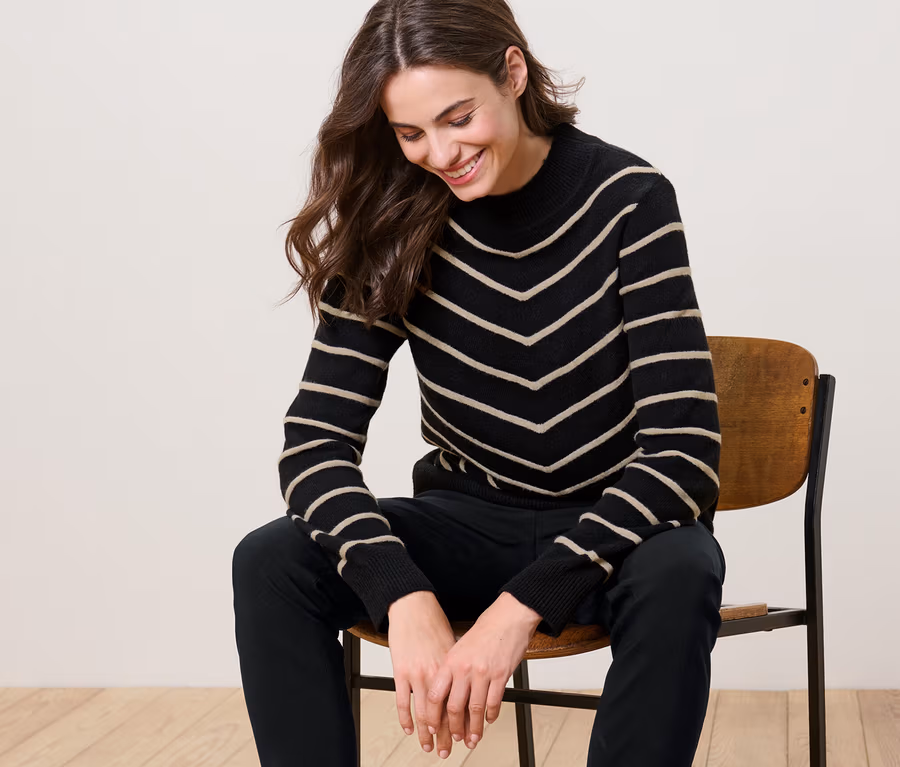 Dik Yakalı Çizgili Örgü Kazak, Siyah