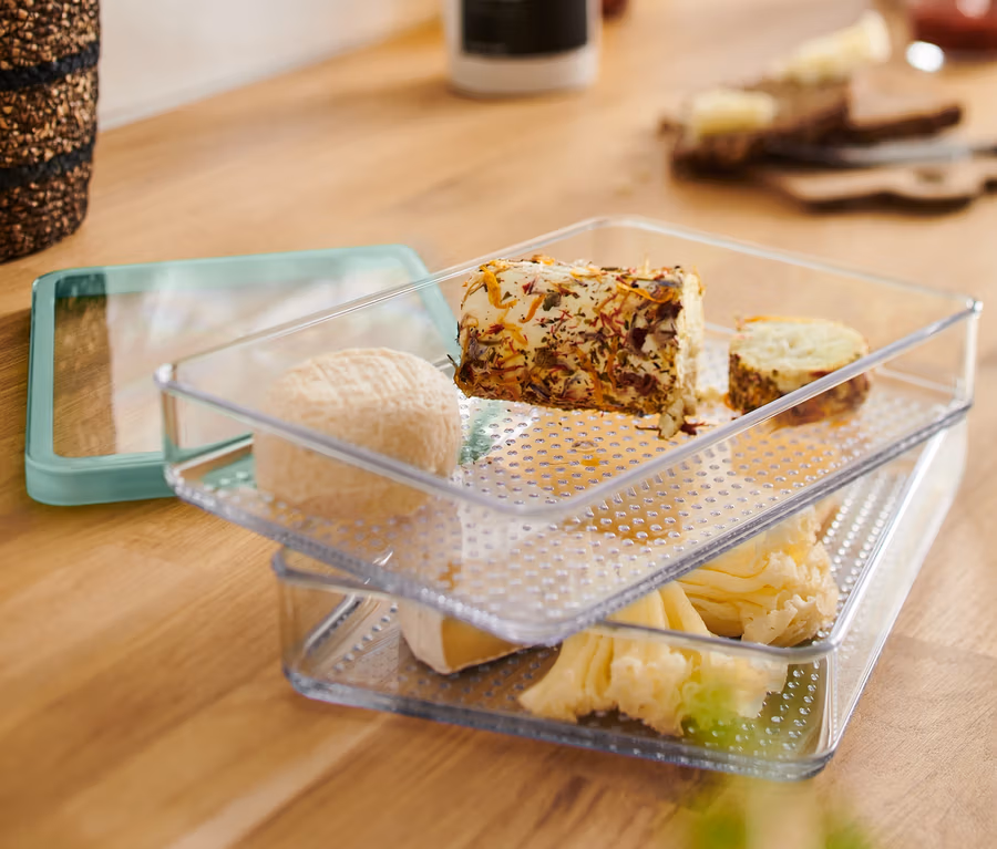 - Buzdolabında yer tasarrufu sağlayan saklama için 2 kutu.