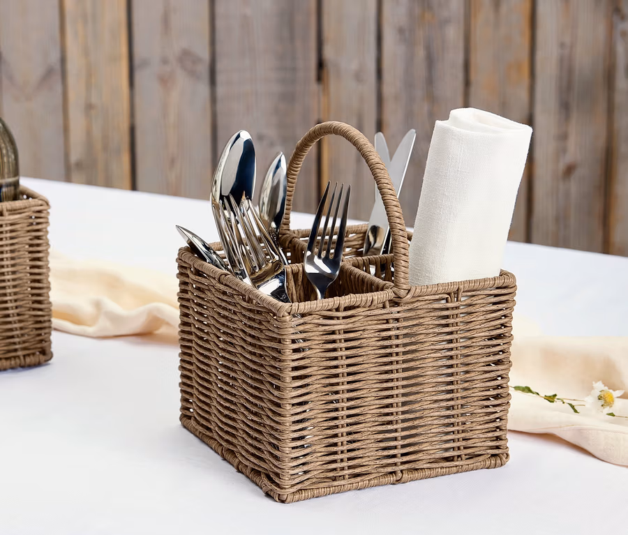 - Mutfak aletleri, çatal-bıçak, baharatlar, soslar vb. için çok yönlü saklama ve taşıma imkanı