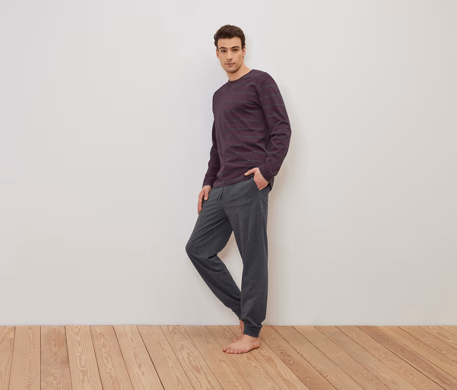 - Pijama üstü bordo-gri çizgili