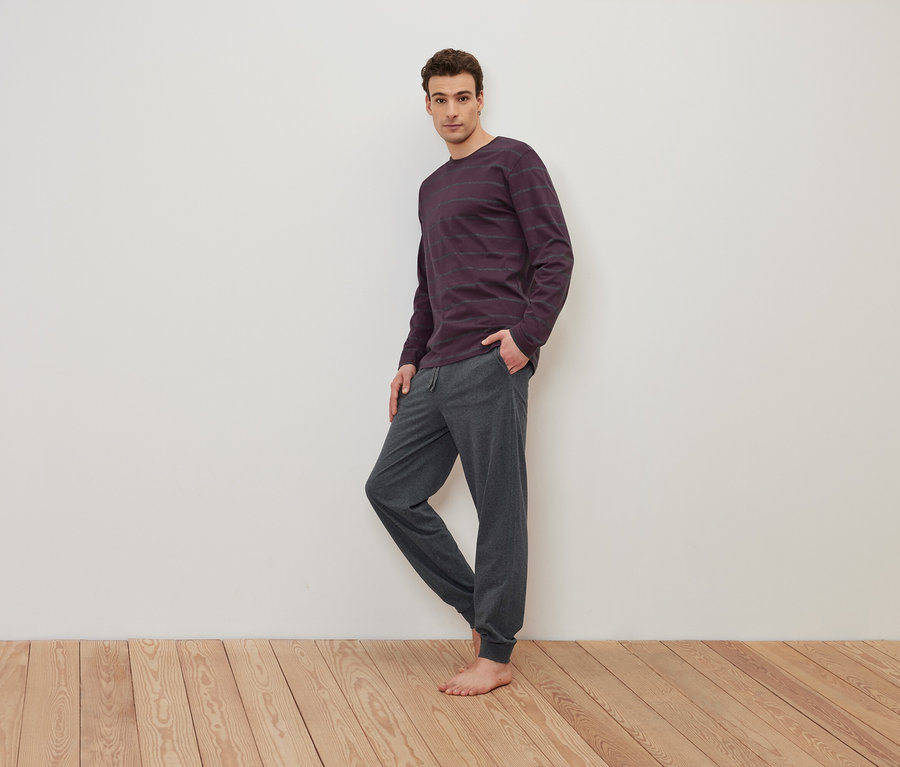 - Yumuşak Single-Jersey kalitede saf pamuktan erkek pijama takımı