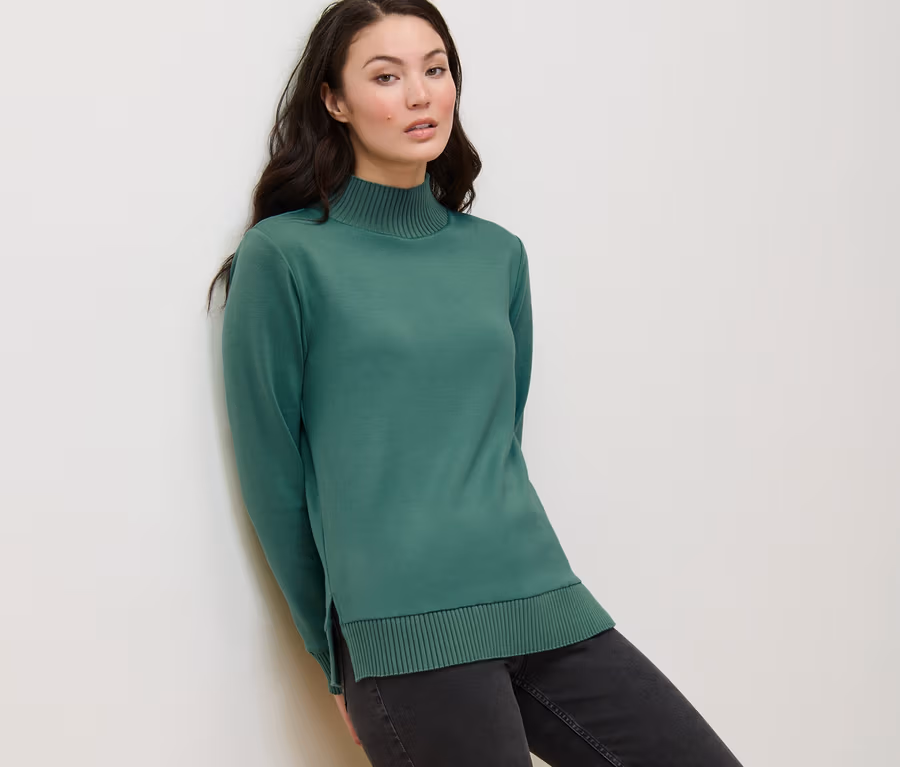 Yarım Balıkçı Yaka Sweatshirt, Yeşil