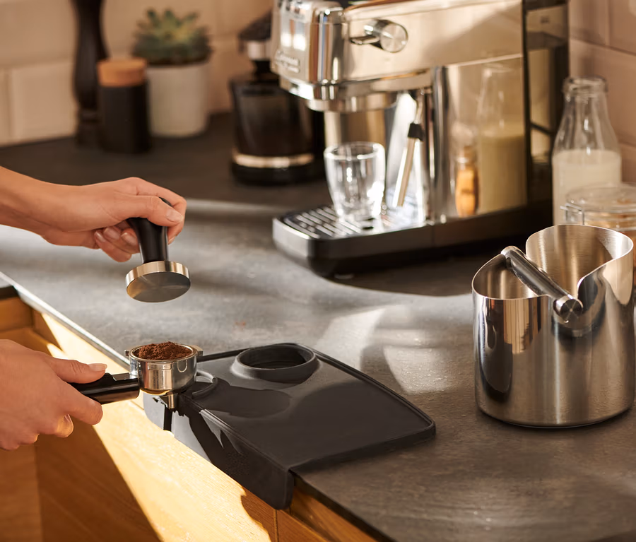 - Tamper matı, sıkıştırma işlemi sırasında tezgahı ve portafiltreyi korur