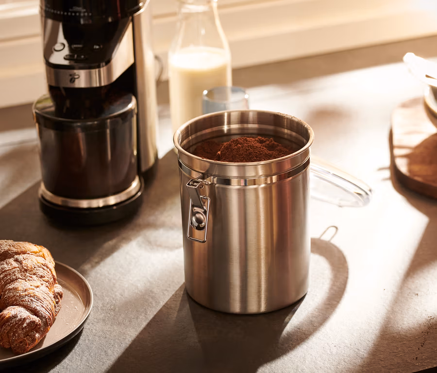 Kahve, vakumlu paketinden çıktıktan sonra bile hava geçirimsiz kapanan paslanmaz çelik kahve kutusunda uzun süre taze kalır ve aromasını kaybetmez.