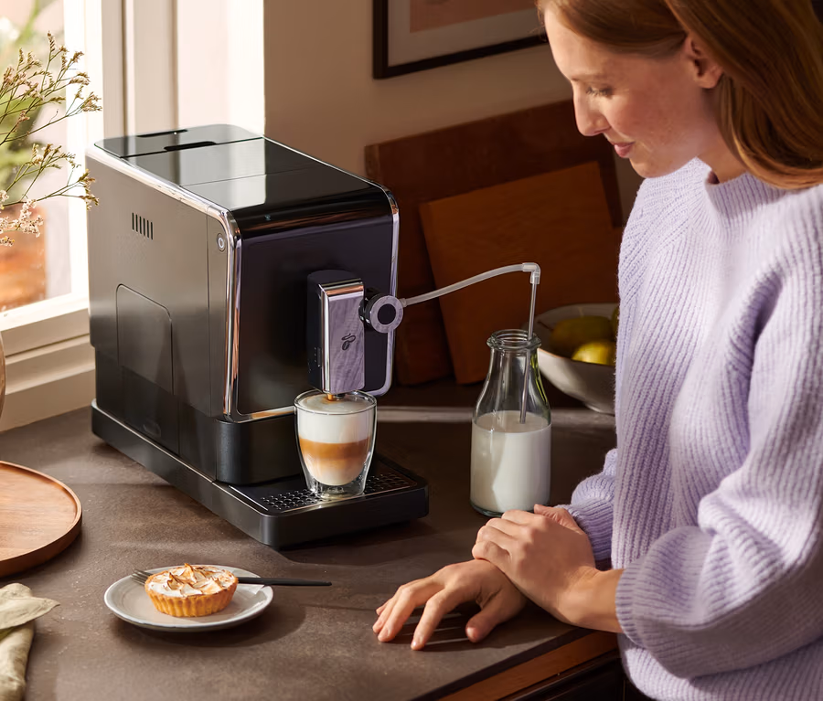 Tchibo “Esperto Pro” tam otomatik kahve makinesi ile en aromatik Espresso ve Caffè Crema'nın yanı sıra “Tek Tuşla Süt Sistemi” sayesinde tek bir tuşla lezzetli Cappuccino ve süt köpüğü hazırlayabilirsiniz! Sütlü spesiyaliteleri sevenler, süt köpüğünün kıvamını kendileri belirleyebilir ve yumuşak kremsi veya sert kabarık süt köpüğünü seçebilirler - çok çeşitli sütlü kahve kreasyonlarının hazırlanması için! Kahvenizi daha sert seviyorsanız, kahvenizin daha fazla çekirdekle hazırlanması için 'Intense+' tuşuna basın.