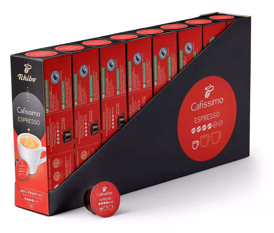 Her bir kapsül, bir fincan leziz Espresso elegant için gereken ölçüde ince öğütülmüş kahve içerir. Kapsül, Tchibo Cafissimo cihazına kolayca takılır. Yapmanız gereken sadece seçim tuşuna dokunmak ve işte kahveniz hazır.